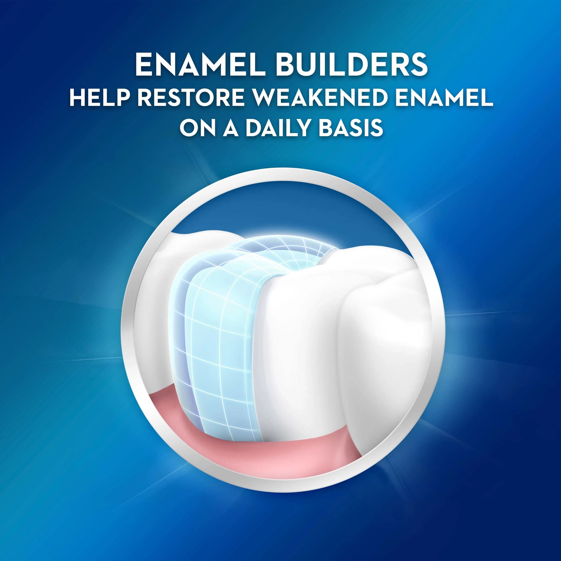 تقوم المركبات المضادة للبكتيريا بتحييد بكتيريا البلاك ومنع إعادة نموها، بينما تقوم المركبات البانية للمينا باستعادة المينا الضعيفة يومياً. تحمي تقنية pH Shield الأسنان من تآكل الأحماض الناتج عن الأطعمة اليومية، مما يحافظ على قوة وسلامة المينا.